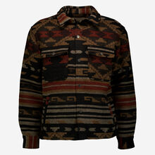 Navy Brown Southwestern Faux Wool Blend Snap Front Jacket