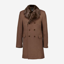 Brown Faux Fur Trim Double Breasted Overcoat