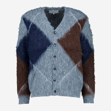 Navy Argyle Diamond Fluffy Oversized Cardigan