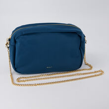 Dunkelblaue Kosmetiktasche mit Kettenriemen