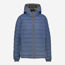 Dunkelblaue Long Fit Pufferjacke mit Kapuze