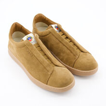 Weiße Sneaker mit bräunlich-rotem Streifen aus Leder
