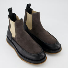 Schwarz-braune Stiefel aus Leder aus Wildleder