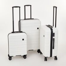 Mittelgroßer beigefarbener Koffer mit Logostickerei