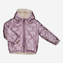 Pink-lilafarbene Pufferjacke mit Kapuze