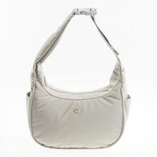 Dunkelblaue Puffy-Schultertasche mit Lederbesatz