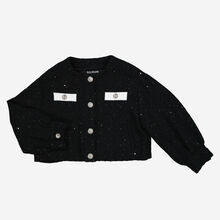 Weiße Strickjacke mit rosafarbenem Streifenmuster