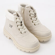 Beigefarben-silberfarbene Stifel mit Logo-Deatil
