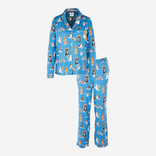 Blauer Pyjama aus Ober- und Unterteil mit Hündchenmuster