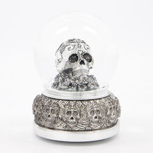 Cremefarbene Schneekugel mit Skelettmotiv 17x11cm