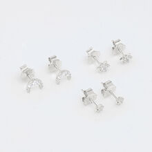 Three Pack Sterling Silver Cubic Zirconia Stud Earrings