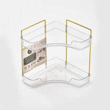 Clear & Gold Tone Two Tier Corner Vanity Organiser 29x26cm