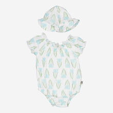 Two Piece White & Green Organic Floral Bodysuit & Hat Set