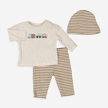 Three Piece Cream & Brown Patterned Sleepsuit Set