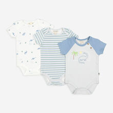 Three Pack Blue & White Dino Bodysuit