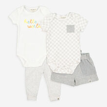 Four Piece Grey & White Checkered Bodysuit Set
