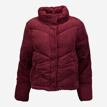 Wine Corduroy Puffer Crop Jacket