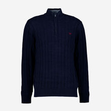 Dark Ivy Blue Cable Knit Half Zip Jumper