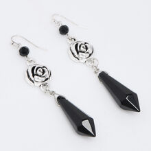 Silver Tone Rose Drop Earrings