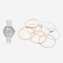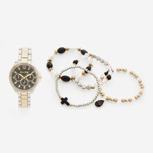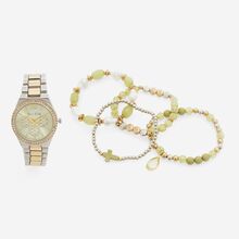 Five Piece Green Silver & Gold Tone Watch & Bracelet Set