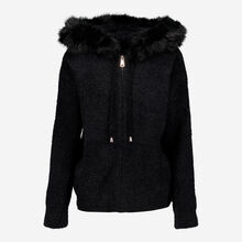 Black Faux Fur Hooded Zip Cardigan