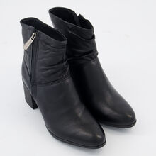 Black Leather Ruched Heeled Boots