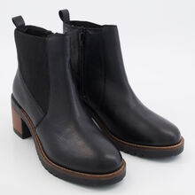 Black Leather Cubic Heeled Ankle Boot