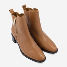Brown Leather Mid Heel Ankle Boots