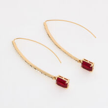 Gold Tone & Red Stone Embellished Threader Earrings
